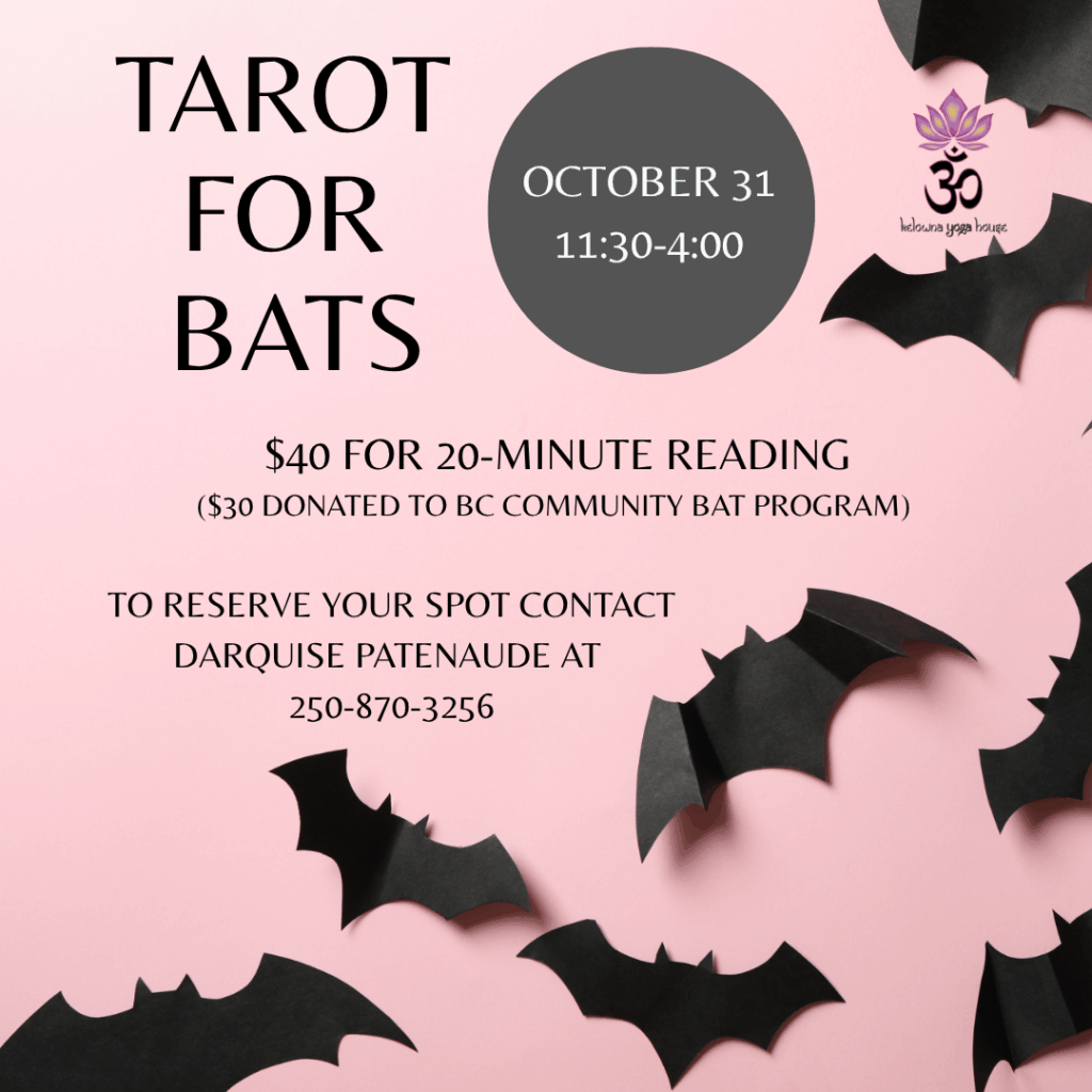 Friday October 31 | 11:30-4:00pm with Darquise Patenaude The wonderful Darquise Patenaude will be in studio at Kelowna Yoga House Friday October 31 from 11:30-4:00pm doing tarot readings with most of the proceeds being donated to the BC Community Bat Program. “I am especially pulled towards animals such as cats and bats since they are […]